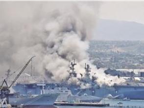 ????“好人理查德”號(hào)兩棲攻擊艦火災(zāi)現(xiàn)場濃煙滾滾