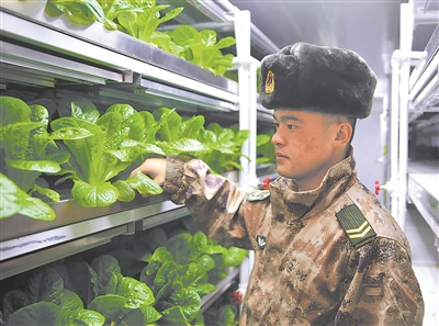 ????高原邊防連隊的“植物工廠”種出新鮮蔬菜。徐明遠 攝