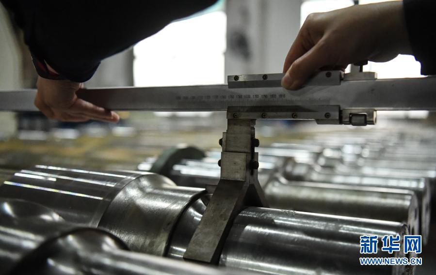 2月1日,柳州車輛段車輪車間質(zhì)量檢查員在測量輪對軸間距。新華社記者 張愛林 攝