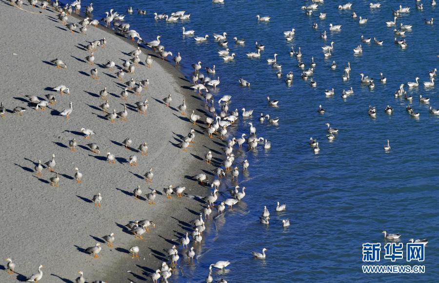 西藏雅尼國家濕地公園水鳥翔集(2月2日攝)。