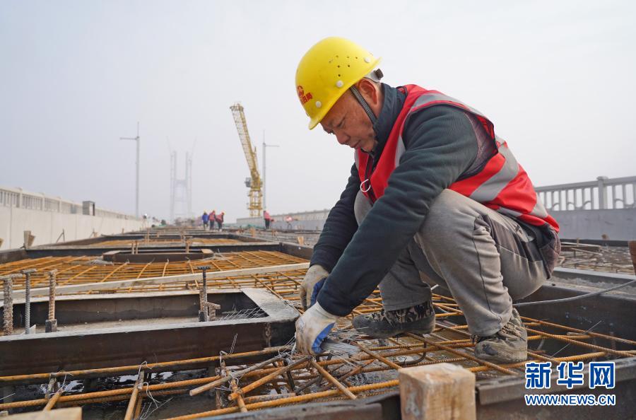 在安九高鐵江西段長江特大橋的工地上,來自安徽的20多名中鐵四局建筑工人在大橋上緊張施工。為響應就地過年政策和追趕因疫情耽誤的工期,他們決定今年不回老家過年了。
