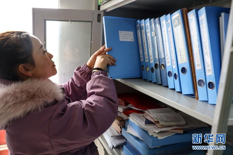 2月13日,吳窮在坪子社區(qū)綜合服務(wù)中心的辦公室整理材料。新華社記者 歐東衢攝