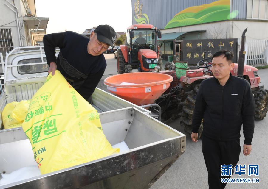 2月23日,湖州錢山下糧油專業(yè)合作社工作人員在農(nóng)機(jī)內(nèi)裝載化肥準(zhǔn)備施肥。立春過后氣溫回升,浙江省湖州市吳興區(qū)道場(chǎng)鄉(xiāng)全力開展春耕工作。今年該鄉(xiāng)計(jì)劃播種農(nóng)作物總面積1.2萬畝,其中水稻5000畝、小麥2000畝。新華社記者 翁忻旸 攝