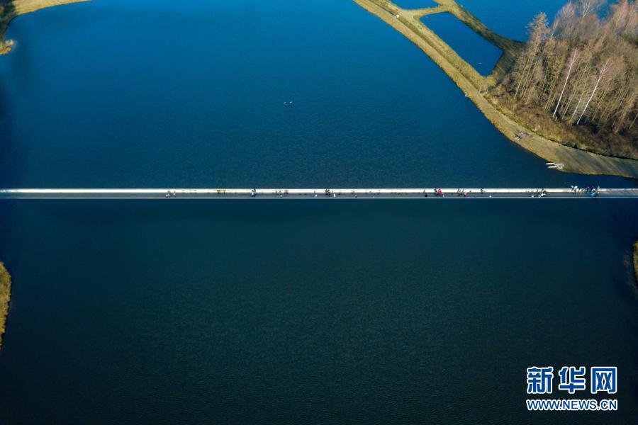 2月27日,人們在比利時小鎮(zhèn)波克萊克附近的“水中通道”中前行(無人機(jī)照片)。
