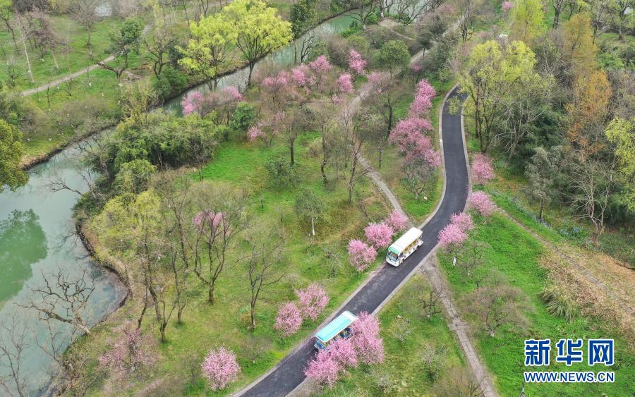 3月2日,觀光車在西溪濕地內(nèi)行駛(無(wú)人機(jī)照片)。