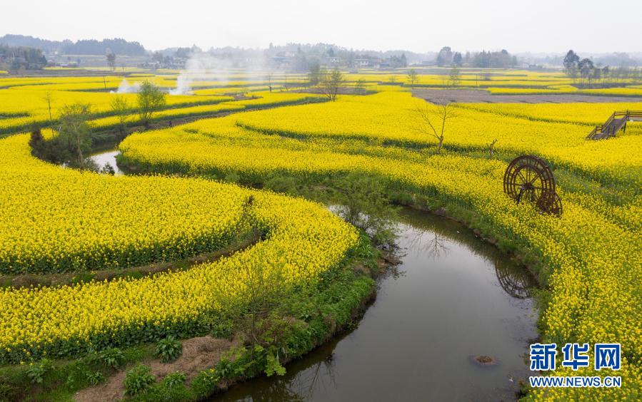 安州區(qū)樂(lè)興鎮(zhèn)蓮花村的油菜花海(3月14日攝,無(wú)人機(jī)照片)。新華社記者 江宏景 攝