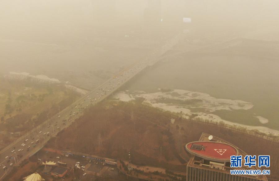 這是3月15日拍攝的遼寧省沈陽市渾河橋(無人機(jī)照片)。當(dāng)日,我國(guó)北方多地出現(xiàn)沙塵天氣。新華社記者 楊青 攝