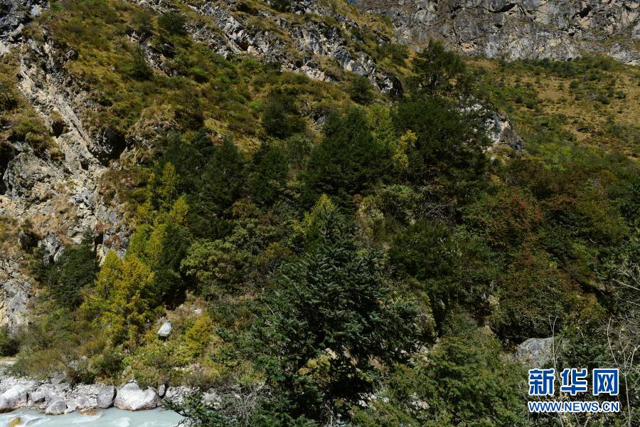 這是西藏定日縣絨轄溝內(nèi)一片含有密葉紅豆杉的植物群落(2020年10月29日攝)。