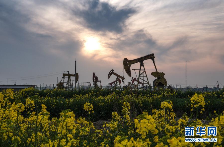 3月23日,在江蘇油田陳堡采油班站,采油機(jī)組在工作中。