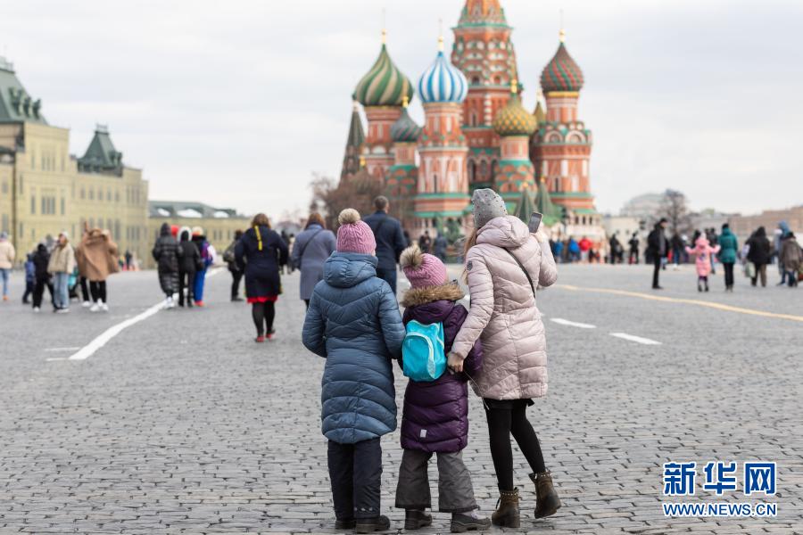 3月23日,在俄羅斯首都莫斯科,人們在紅場上自拍。