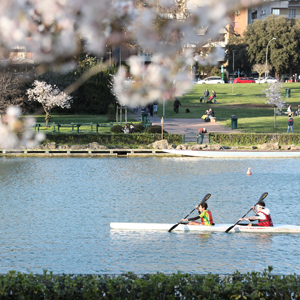 3月24日,佩戴口罩出行的市民從意大利首都羅馬盛開(kāi)的櫻花樹下走過(guò)。