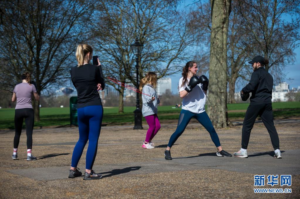 3月29日,人們?cè)谟鴤惗睾5鹿珗@進(jìn)行戶外拳擊練習(xí)。
