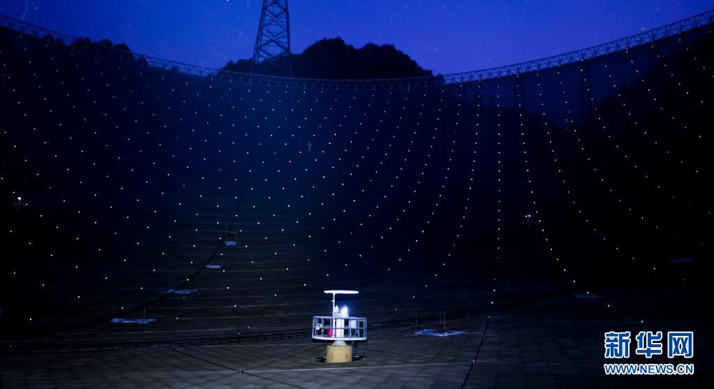 3月29日拍攝的夜幕下的“中國(guó)天眼”。