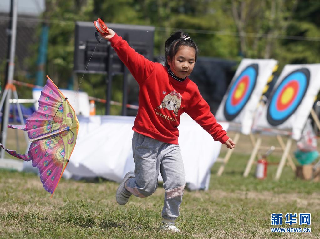 4月10日,小朋友在第二屆金陵風(fēng)箏會(huì)上放風(fēng)箏。當(dāng)日,第二屆金陵風(fēng)箏會(huì)在江蘇省南京市浦口區(qū)永寧街道舉行。人們放飛風(fēng)箏,歡度快樂(lè)時(shí)光。新華社記者 季春鵬 攝