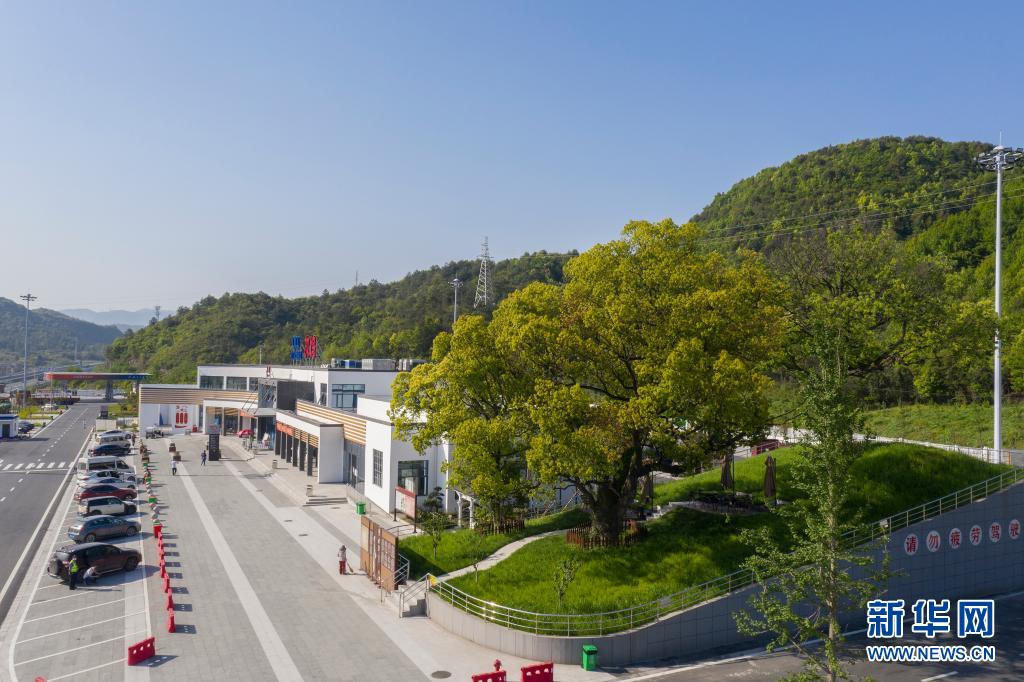 杭州第二繞城高速西復線次塢服務區(qū)有3棵樹齡在100年以上的古樹。服務區(qū)在建設過程中,將古樹保護起來,現已成為一道特色景觀。新華社發(fā)(郭斌 攝)
