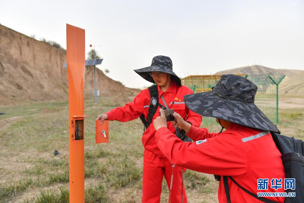 4月28日,巡線隊(duì)員侯勵(lì)峰、曹碩(左)在巡線途中拍照記錄一處設(shè)置故障。新華社記者 張博文 攝