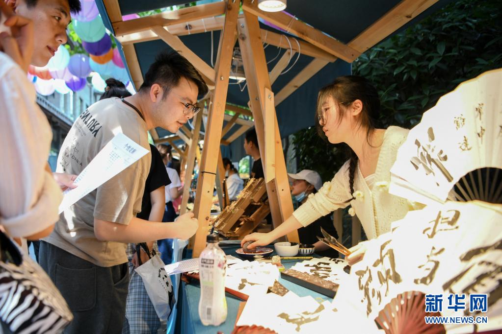 5月1日,游客在四川省成都市寬窄巷子景區(qū)的一家文創(chuàng)商店選購(gòu)扇子。