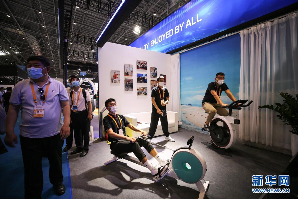 首屆中國國際消費品博覽會在海南省??谑信e行,其中包括旅居生活和服務消費等展區(qū)。參展商帶來的運動器械等產(chǎn)品吸引了諸多觀眾現(xiàn)場體驗、咨詢。