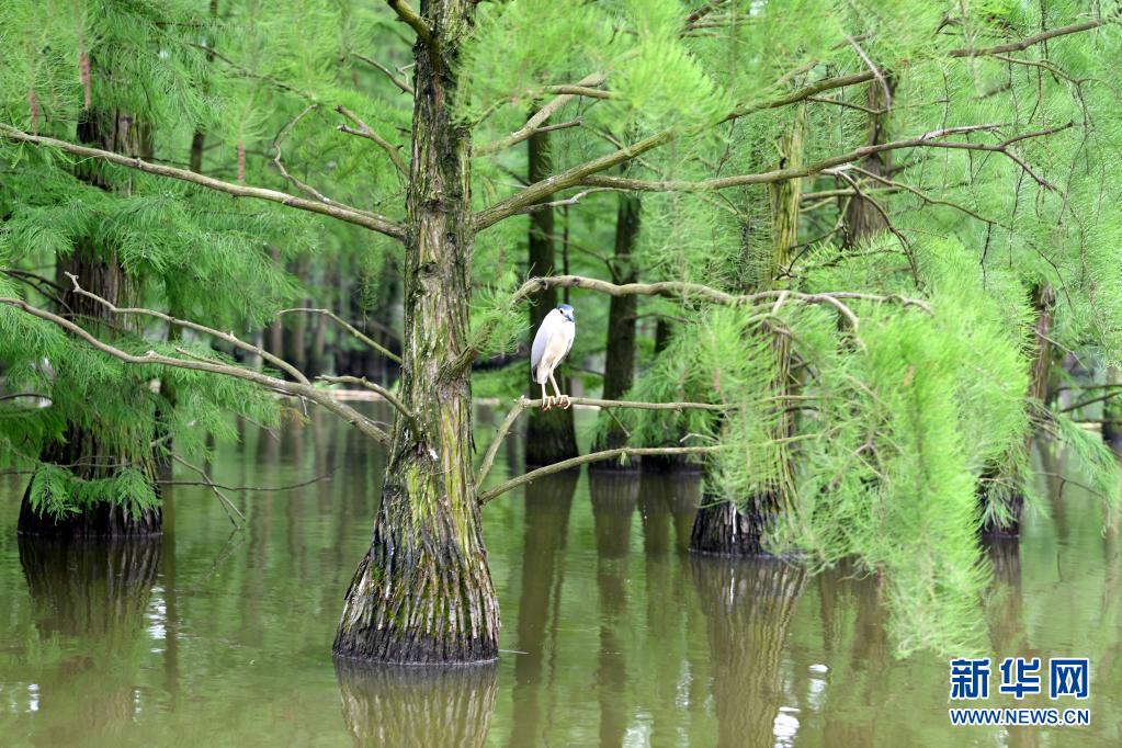 位于安徽省滁州市來安縣雷官鎮(zhèn)的池杉湖國家濕地公園經(jīng)過多年的生態(tài)修復,形成分布數(shù)萬株池杉樹、具有獨特觀賞價值的“水上森林”濕地景觀,成為眾多鳥類生活、棲息的“天堂”。