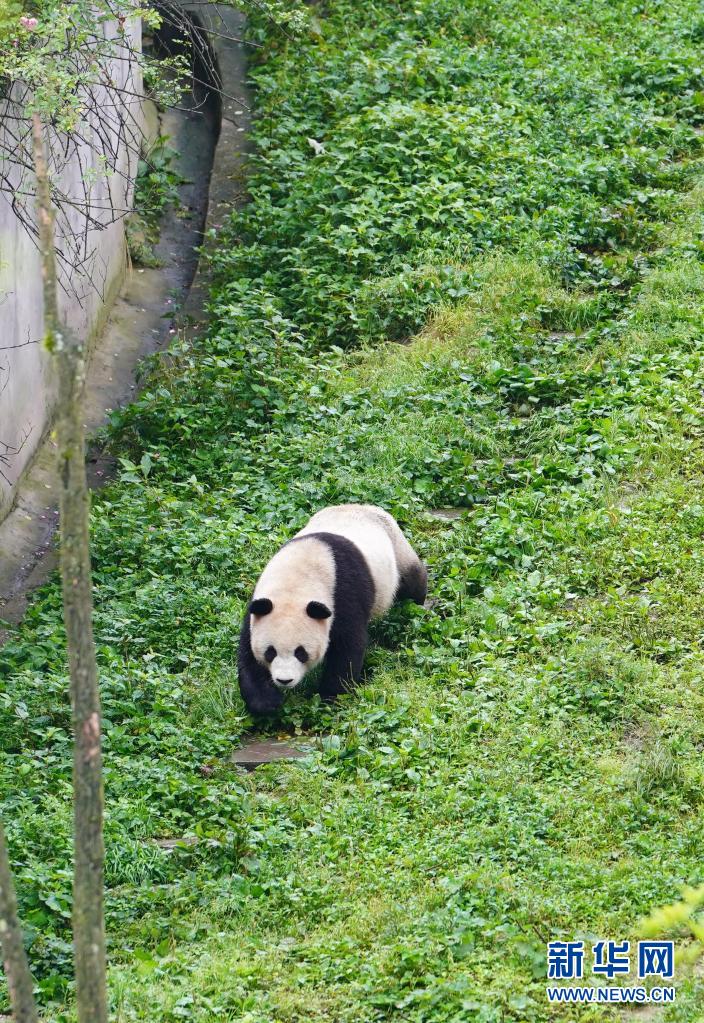 這是5月15日在中國(guó)大熊貓保護(hù)研究中心雅安碧峰峽基地拍攝的大熊貓。