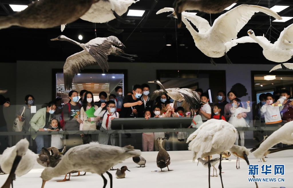 5月18日,觀眾在鳥類展區(qū)聽講解員介紹不同鳥類的特點(diǎn)和習(xí)性。