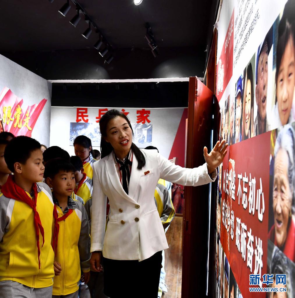 5月21日,在棗莊市臺(tái)兒莊區(qū)張山子鎮(zhèn)丁莊村,“學(xué)黨史惠民”教育小分隊(duì)成員李冉為學(xué)生們講解八路軍115師運(yùn)河支隊(duì)的故事。