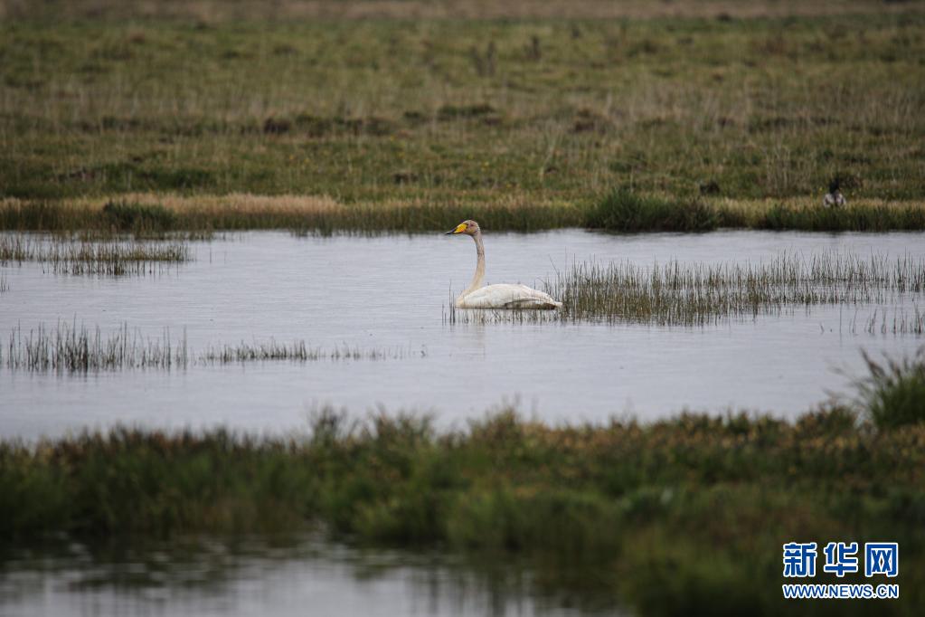 這是6月2日在甘肅省甘南藏族自治州碌曲縣尕海湖拍攝的國(guó)家二級(jí)保護(hù)動(dòng)物大天鵝。