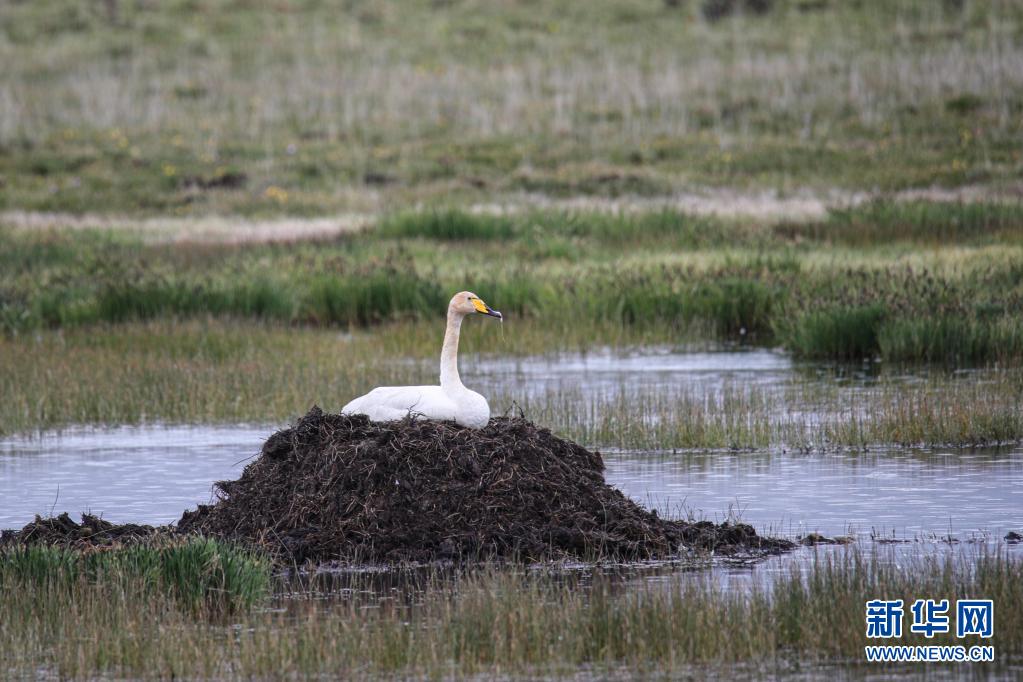 這是6月2日在甘肅省甘南藏族自治州碌曲縣尕海湖拍攝的國家二級(jí)保護(hù)動(dòng)物大天鵝。
