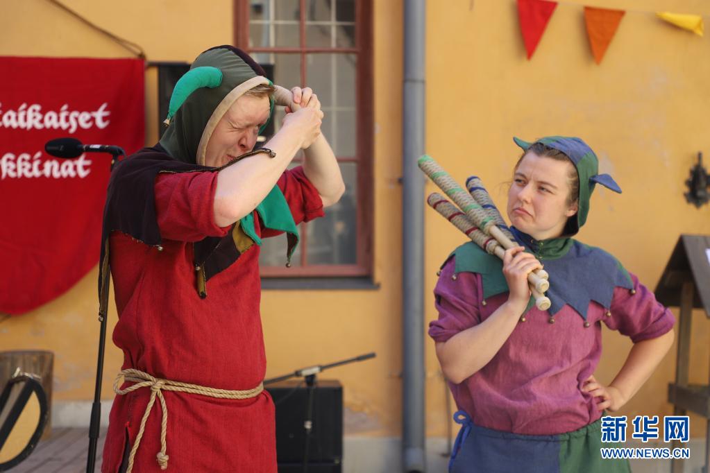 7月1日,演員在芬蘭圖爾庫(kù)舉行的“中世紀(jì)市集”上表演。
