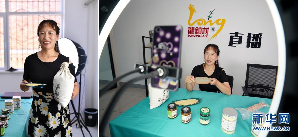 拼版照片:左圖為宋俊麗在山西省平順縣龍鎮(zhèn)村電商服務中心直播間里;右圖為宋俊麗通過網(wǎng)絡直播介紹農(nóng)產(chǎn)品(7月8日攝)。2018年,時年29歲的宋俊麗參加了縣里組織的電商培訓,在電商導師的鼓勵下,她嘗試了首次直播,當時直播間里只有幾名觀眾。在自己的堅持和電商導師的幫助下,如今她已收獲了不少粉絲,每次上線直播,粉絲們都會讓她推薦當?shù)氐奶厣r(nóng)產(chǎn)品。