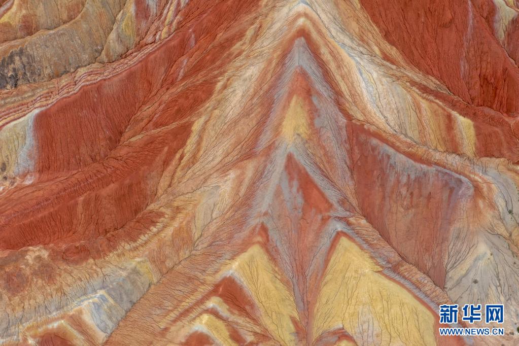 張掖世界地質(zhì)公園的一處彩色丘陵地貌景觀(7月14日攝,無人機照片)。