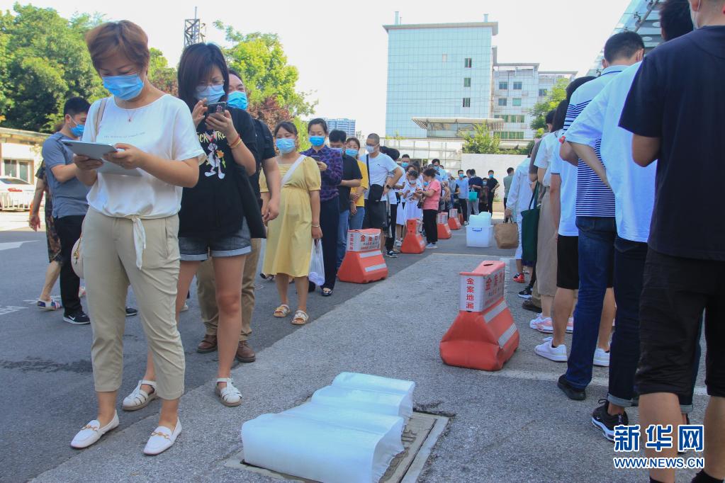 江蘇省南京市于7月21日開始對全市常住人口、外來人員開展全員核酸檢測。目前正值盛夏,氣溫較高,在南京市第一醫(yī)院河西院區(qū)核酸檢測點,工作人員專門為排隊等候的市民準(zhǔn)備了冰塊降溫。