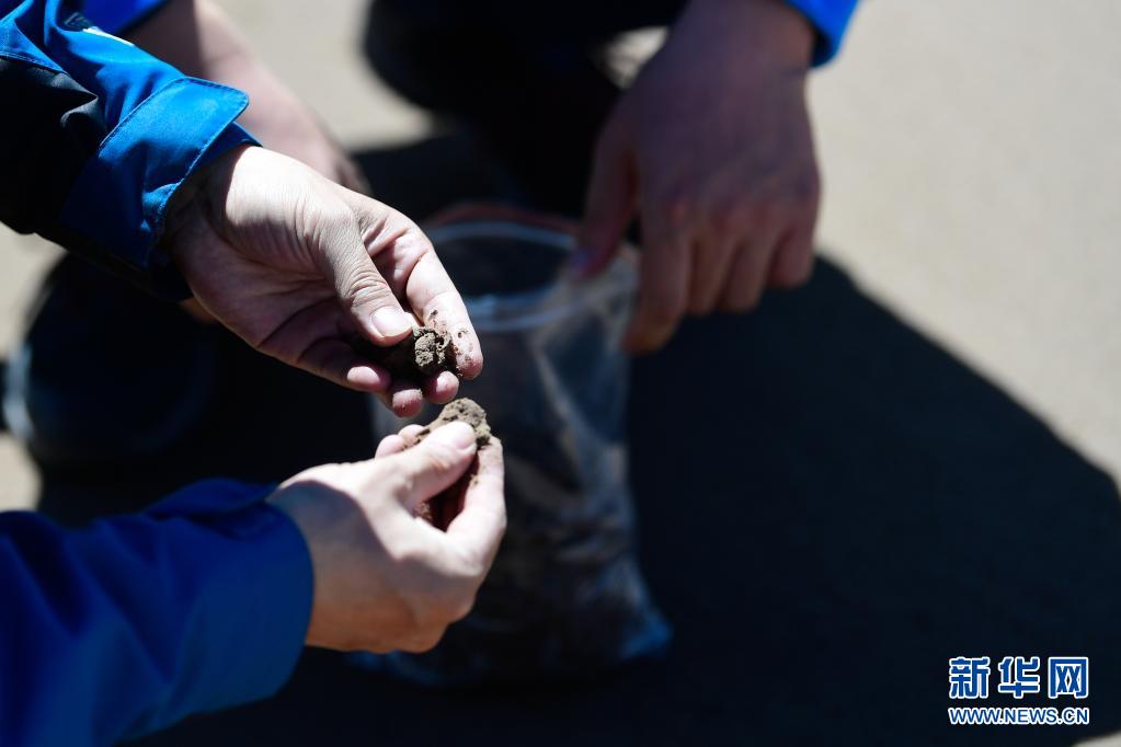 2021年長(zhǎng)江源綜合科考的科考隊(duì)員在通天河流域采集土樣(7月24日攝)。
