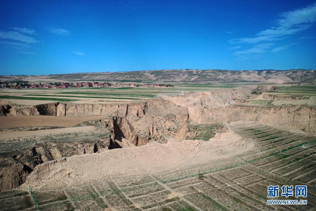 寧夏吳忠市同心縣預(yù)旺鎮(zhèn)“抗戰(zhàn)之聲”照片拍攝地(6月21日攝,無人機(jī)照片)。