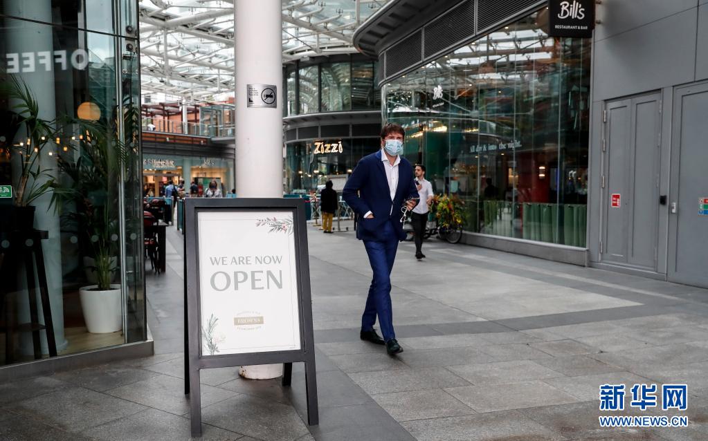 7月26日,一名戴口罩的男子從英國(guó)倫敦維多利亞一家開放的餐廳旁走過。