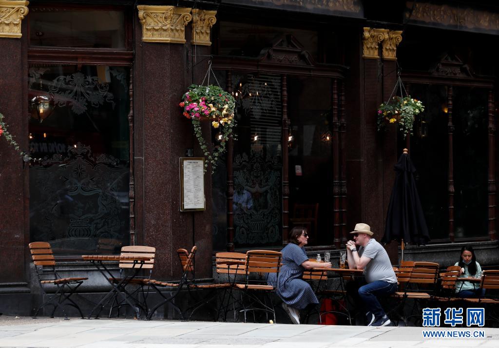 7月26日,人們坐在英國(guó)倫敦市中心一家酒吧的戶(hù)外餐飲區(qū)。