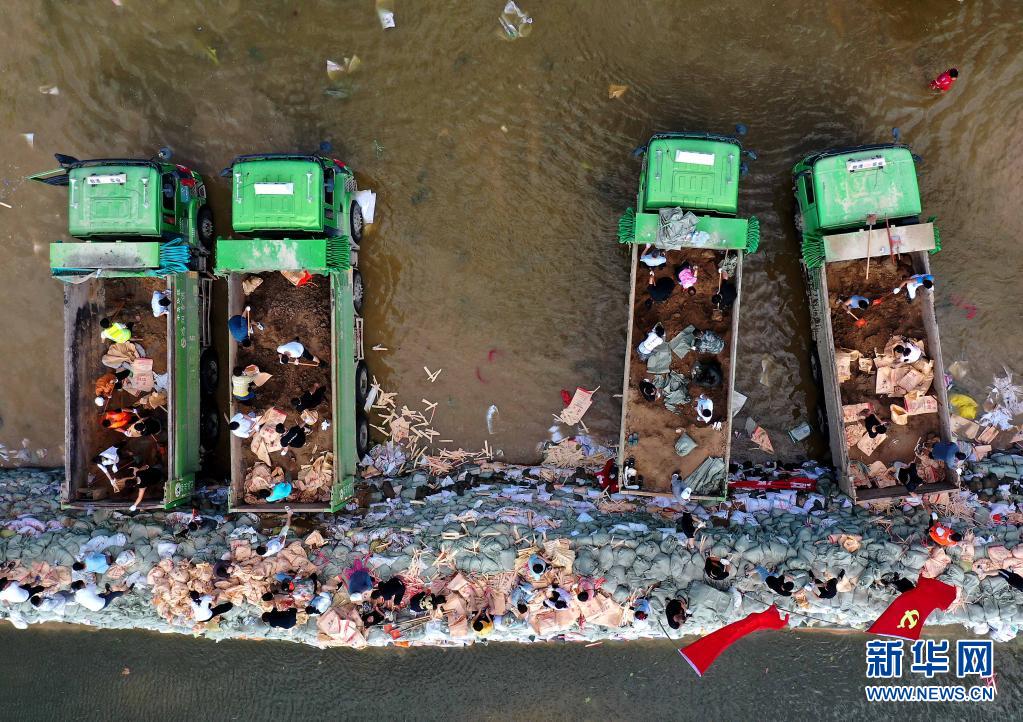 當(dāng)日,在河南省鶴壁市??h傅莊堤上,不少群眾自發(fā)前來(lái)和救援人員一起裝沙袋、運(yùn)沙袋,共筑堤壩。受持續(xù)強(qiáng)降雨影響,??h防汛形勢(shì)嚴(yán)峻,傅莊堤主要為??h縣城及26個(gè)村莊提供保護(hù)。新華社記者 李安 攝