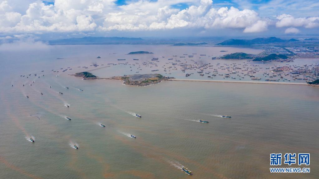 當日中午12時,浙江沿海地區(qū)的部分漁船結束伏季休漁,駛出漁港,奔赴漁場。