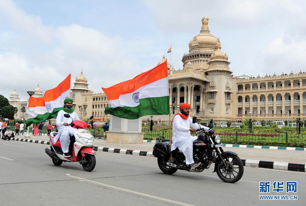 8月15日,人們?cè)谟《劝嗉恿_爾展示印度國(guó)旗,慶祝獨(dú)立日。