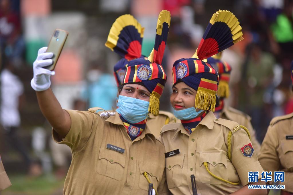 8月15日,警察在印度阿薩姆邦參加獨(dú)立日慶?;顒?dòng)。