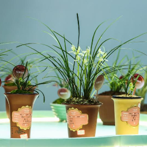 这是3月13日在春兰大集“花盒”艺术空间拍摄的各类兰花创意组合盆栽。