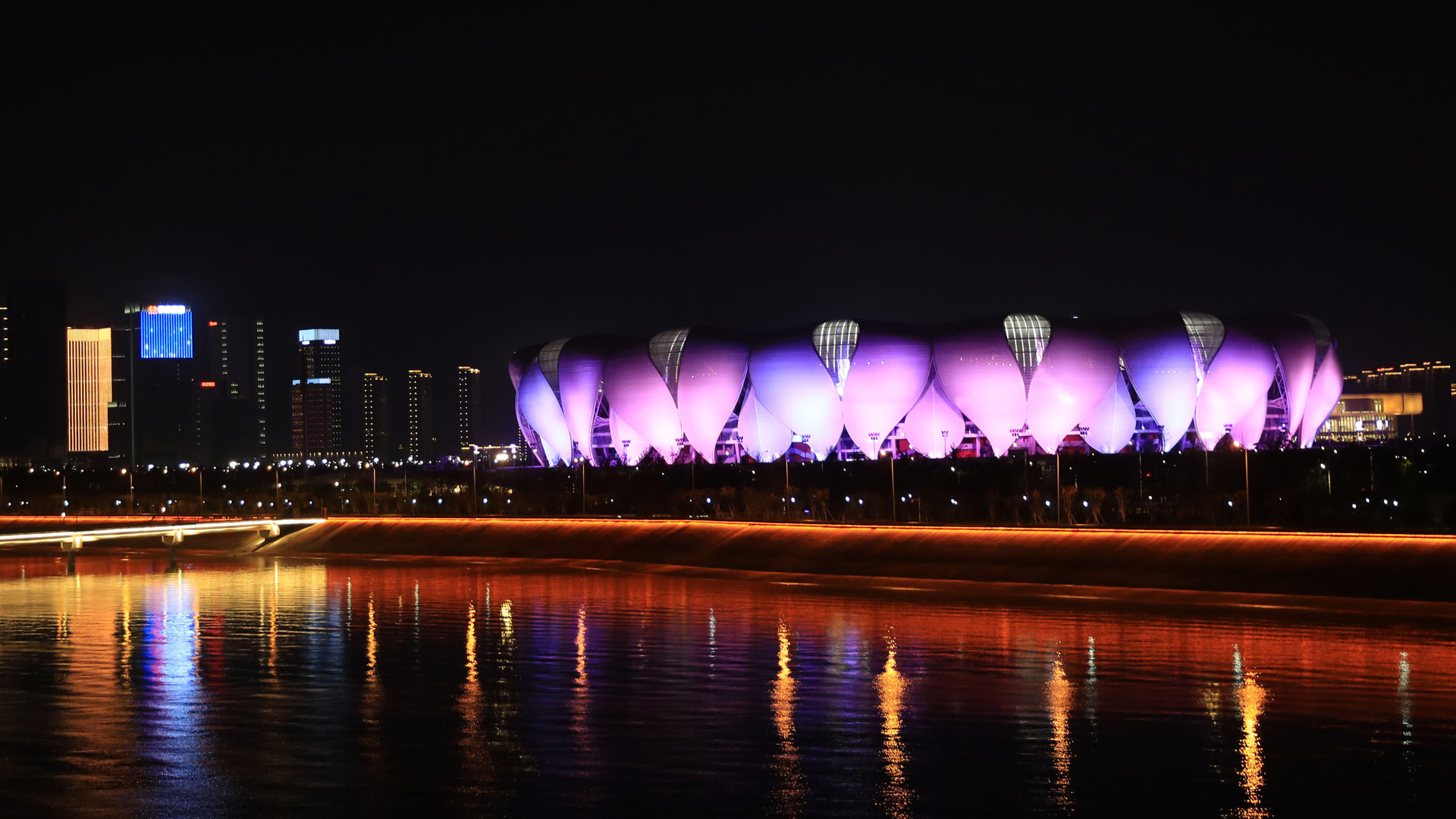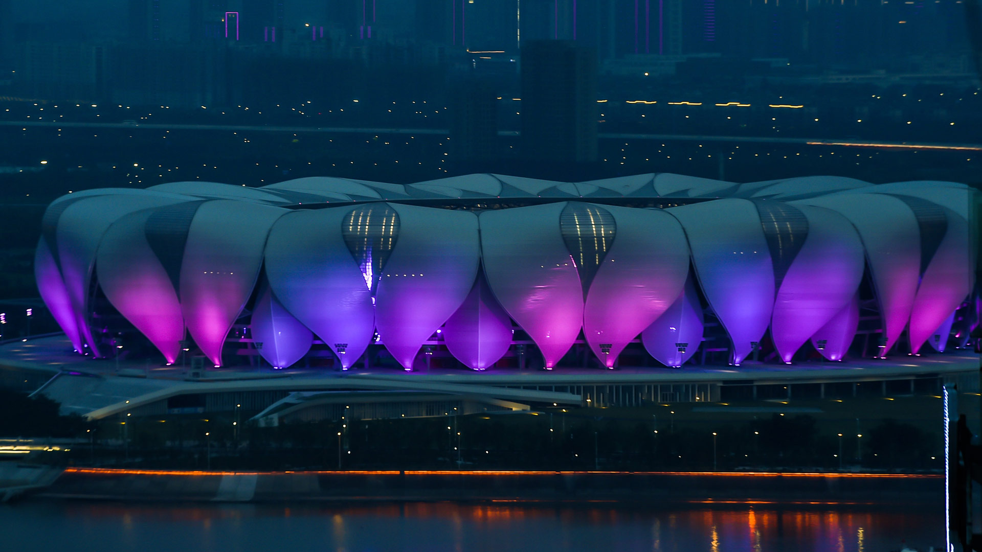 杭州奧體中心主體育場被彩燈點亮(8月31日攝)。新華社記者 徐昱 攝
