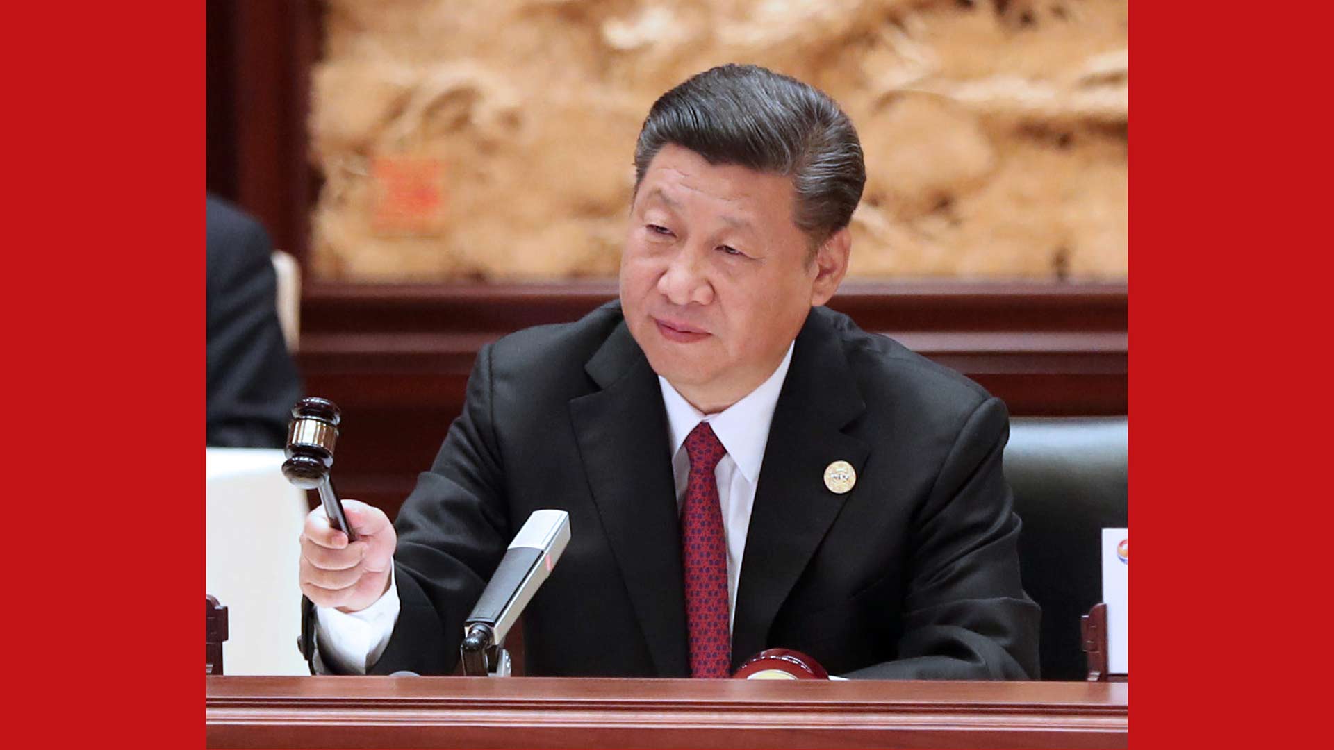 5月15日,“一帶一路”國際合作高峰論壇圓桌峰會在北京雁棲湖國際會議中心舉行,國家主席習近平主持會議并致開幕辭。這是習近平宣布會議開始。新華社記者 馬占成 攝
