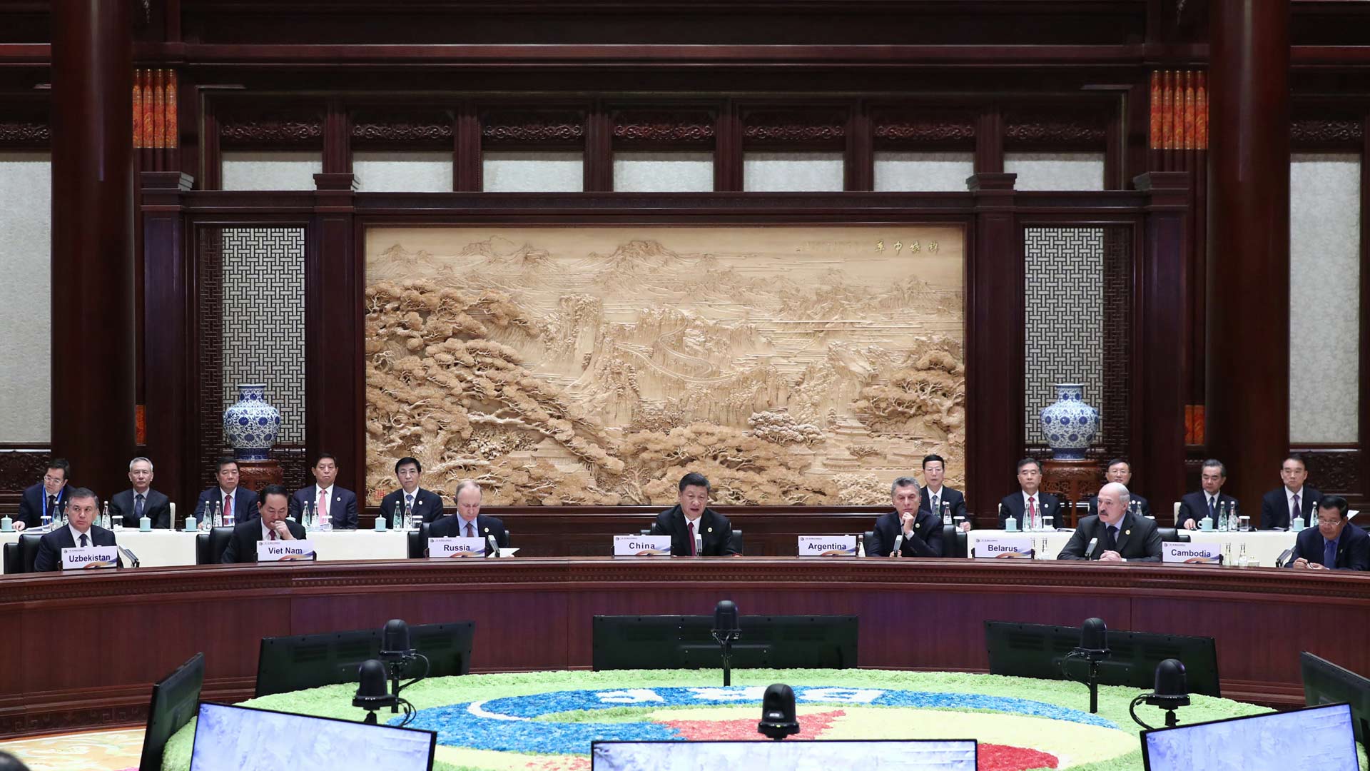 5月15日,“一帶一路”國際合作高峰論壇圓桌峰會在北京雁棲湖國際會議中心舉行,國家主席習近平主持會議并致開幕辭。新華社記者 鞠鵬 攝