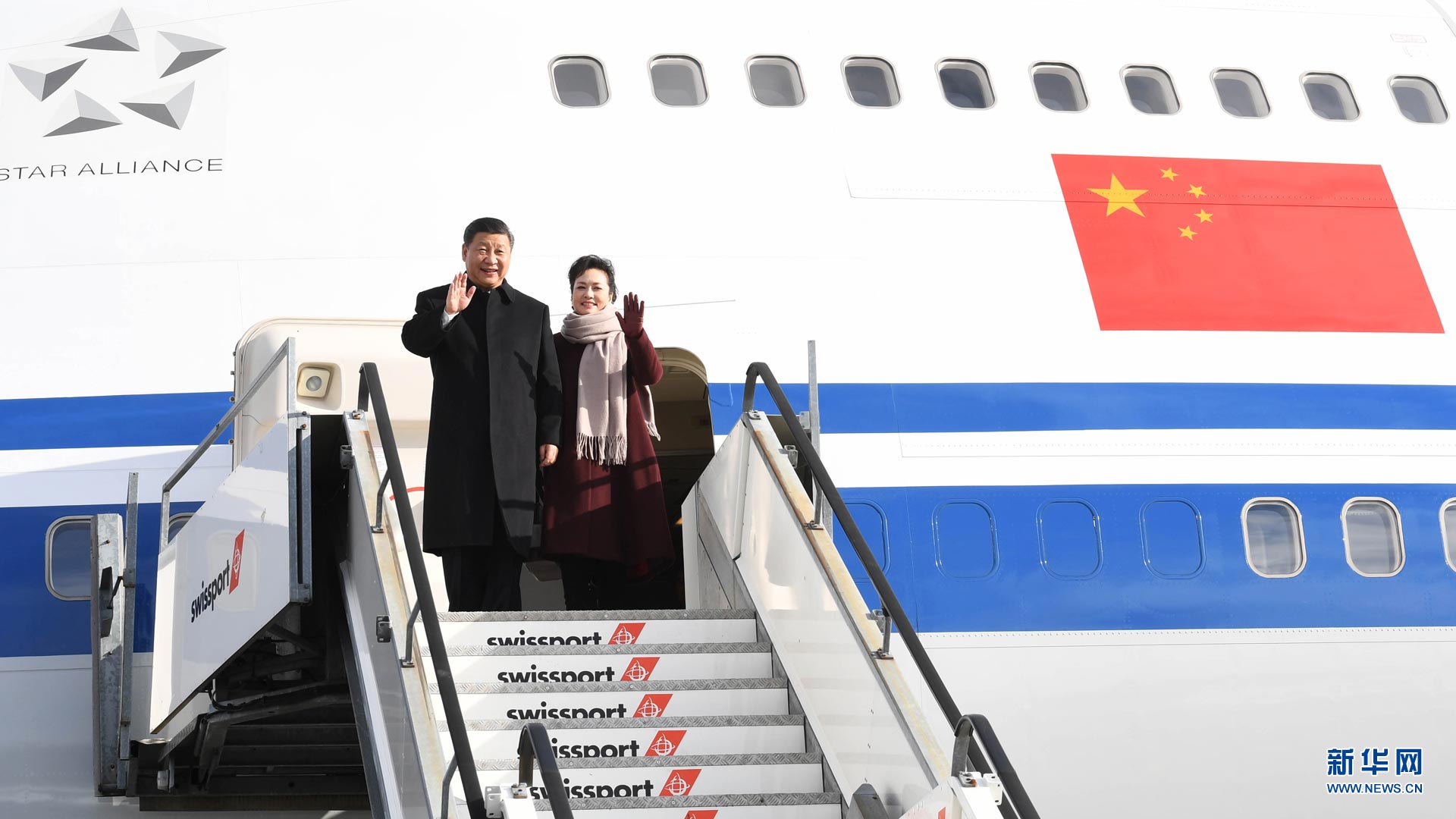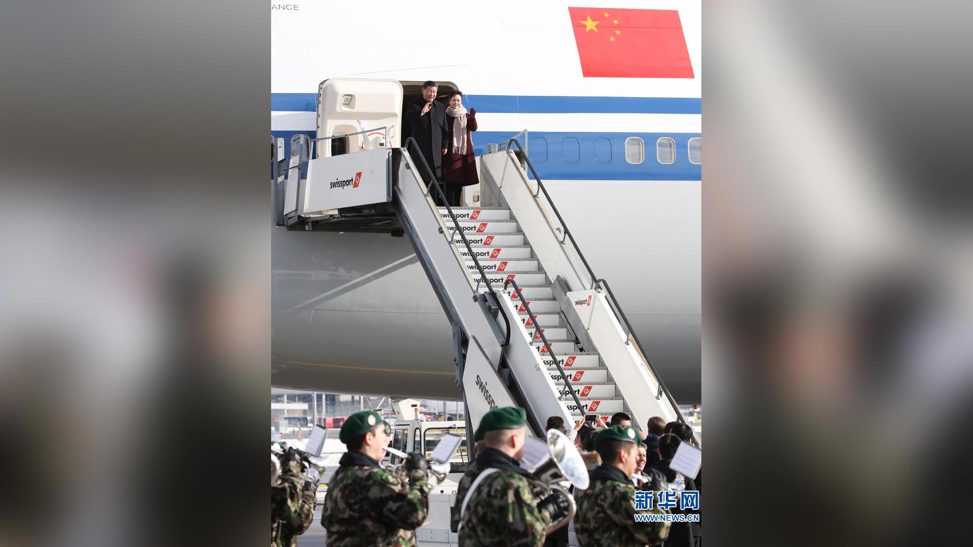 1月15日,國(guó)家主席習(xí)近平乘專機(jī)抵達(dá)蘇黎世,開始對(duì)瑞士聯(lián)邦進(jìn)行國(guó)事訪問(wèn)。 這是習(xí)近平和夫人彭麗媛步出艙門。新華社記者饒愛民攝2017-01-16