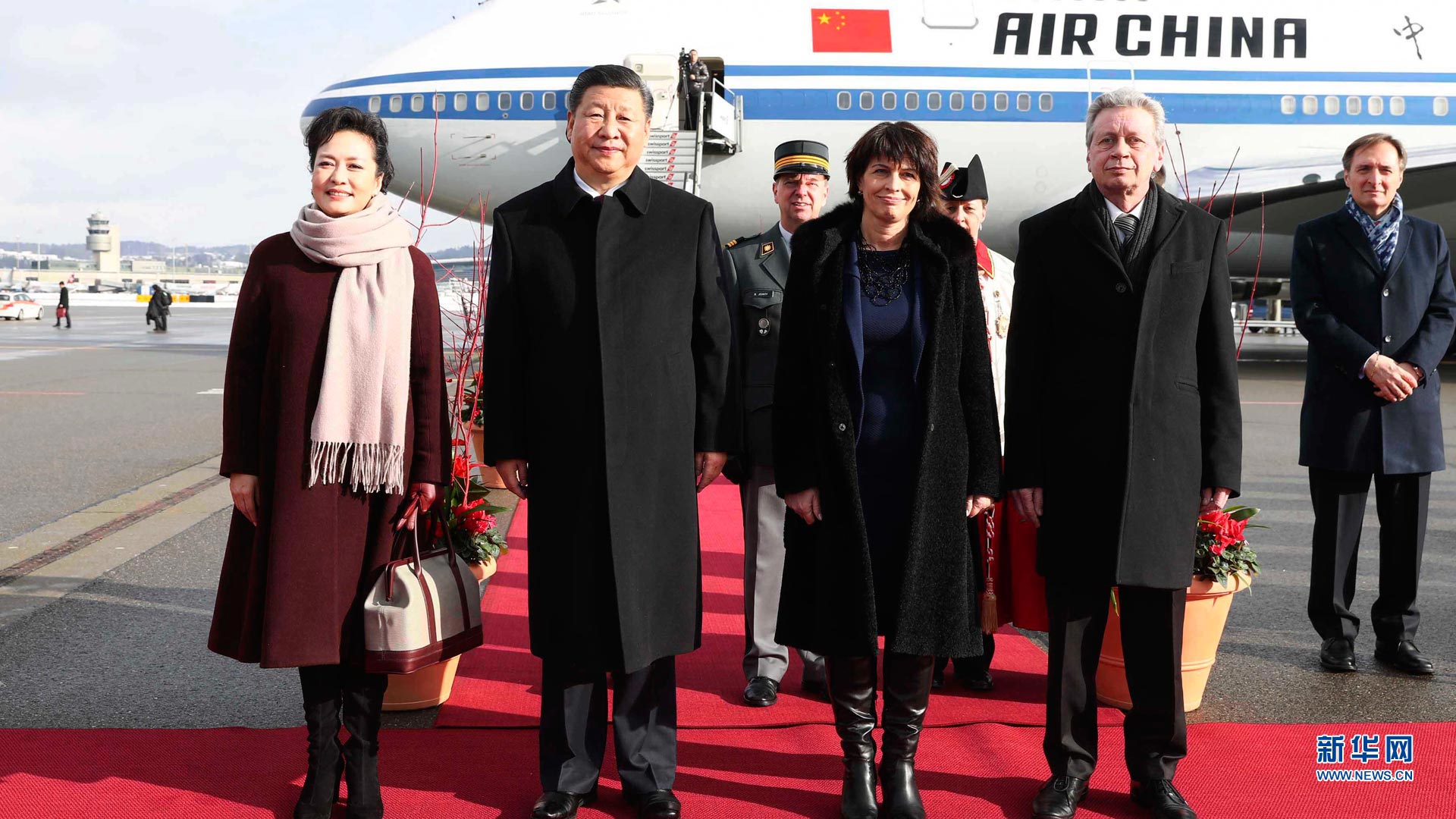 1月15日,國(guó)家主席習(xí)近平乘專機(jī)抵達(dá)蘇黎世,開始對(duì)瑞士聯(lián)邦進(jìn)行國(guó)事訪問(wèn)。這是瑞士聯(lián)邦主席洛伊特哈德在機(jī)場(chǎng)為習(xí)近平和夫人彭麗媛舉行隆重歡迎儀式。新華社記者蘭紅光攝2017-01-16
