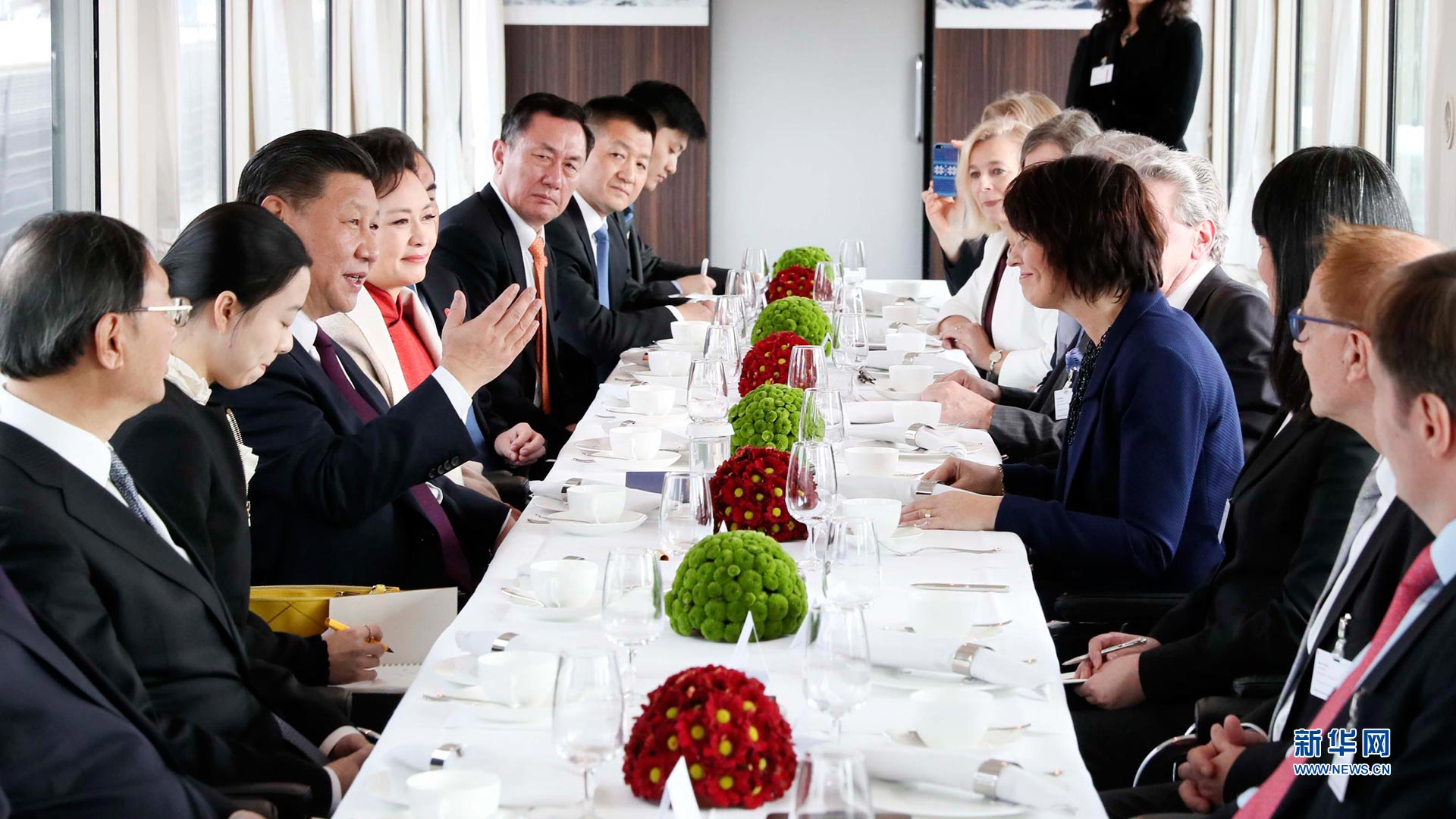 1月15日,國(guó)家主席習(xí)近平在瑞士聯(lián)邦主席洛伊特哈德陪同下,乘坐瑞士政府專列自蘇黎世前往瑞士首都伯爾尼。在專列行進(jìn)過(guò)程中,習(xí)近平和夫人彭麗媛受洛伊特哈德主席夫婦邀請(qǐng),在輕松愉快的氛圍中品茶暢談。新華社記者蘭紅光攝2017-01-16