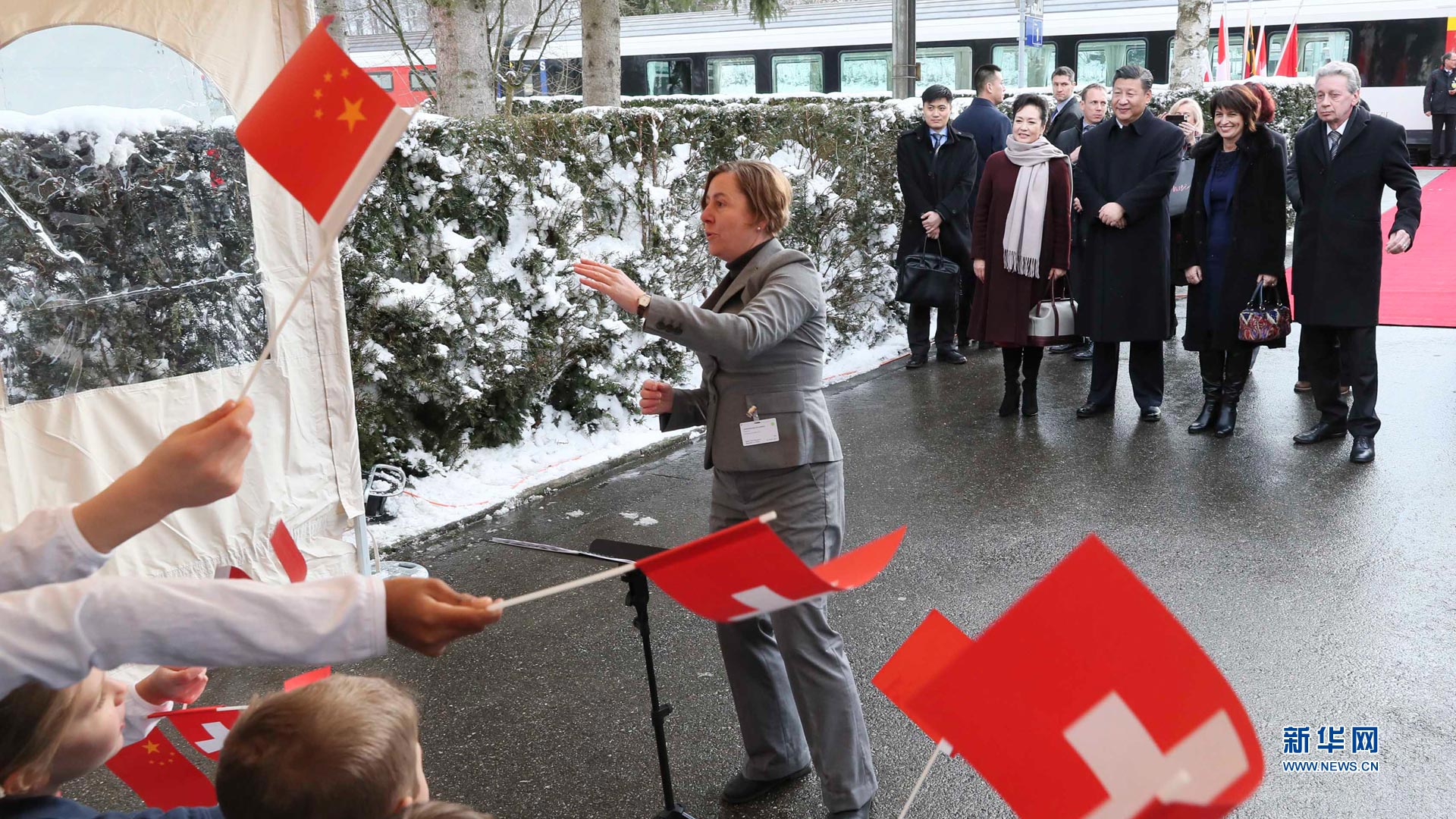 1月15日,國(guó)家主席習(xí)近平在瑞士聯(lián)邦主席洛伊特哈德陪同下,乘坐瑞士政府專列自蘇黎世前往瑞士首都伯爾尼。在專列行進(jìn)過(guò)程中,習(xí)近平和夫人彭麗媛受洛伊特哈德主席夫婦邀請(qǐng),在輕松愉快的氛圍中品茶暢談。這是習(xí)近平和夫人彭麗媛在伯爾尼克爾薩茨火車站觀看瑞士童聲合唱團(tuán)表演。 新華社記者蘭紅光攝2017-01-16
