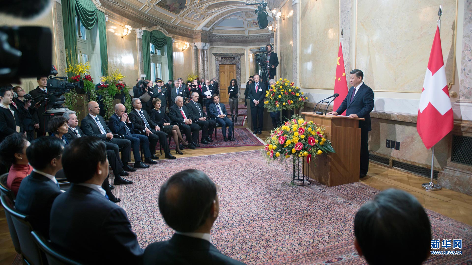 1月15日,國(guó)家主席習(xí)近平在伯爾尼出席瑞士聯(lián)邦委員會(huì)全體委員集體舉行的迎接儀式并致辭。 新華社記者謝環(huán)馳攝2017-01-16