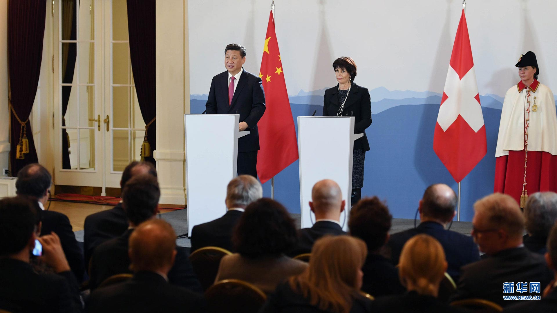 1月16日,國(guó)家主席習(xí)近平在伯爾尼同瑞士聯(lián)邦主席洛伊特哈德舉行會(huì)談。這是會(huì)談后,兩國(guó)元首共同會(huì)見記者。新華社記者 饒愛民 攝2017-01-17